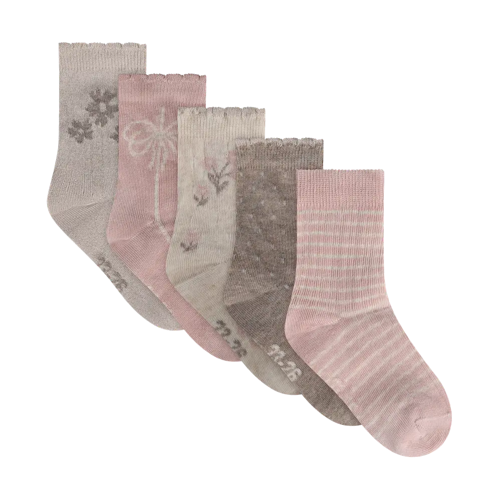 • Strømpe M. Mønster (5-Pak) - Rose Smoke - 19\22 - Bekids